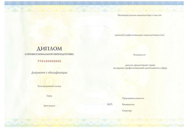 По итогам обучения выдается Диплом о профессиональной переподготовки установленного образца с указанием профессии.