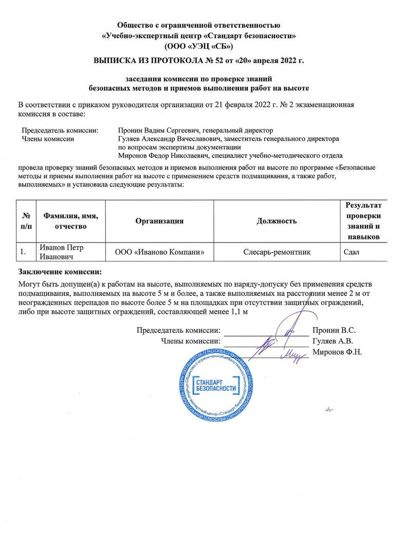 Существует 3 группы сотрудников, которые осуществляют работу на высоте. Все специалисты, вне зависимости от квалификации, должны быть дипломированными, а также соответствовать ограничениям по медицинским показаниям, возрасту. После обучения каждому работнику выдается удостоверение и личная книжка учета выполнения высотных работ.